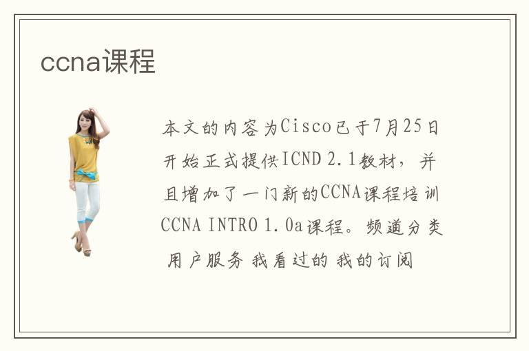 本文的內(nèi)容為Cisco已于7月25日開始正式提供ICND 2.1教材,并且增加了一門新的CCNA課程培訓(xùn)CCNA INTRO 1.0a課程。