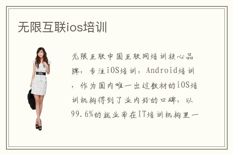 無限互聯(lián)中國互聯(lián)網(wǎng)培訓(xùn)核心品牌,專注iOS培訓(xùn),Android培訓(xùn),作為國內(nèi)唯一出過教材的iOS培訓(xùn)機構(gòu)得到了業(yè)內(nèi)好的口碑,以99.6%的就業(yè)率在IT培訓(xùn)機構(gòu)里一馬當(dāng)先,iOS開發(fā)