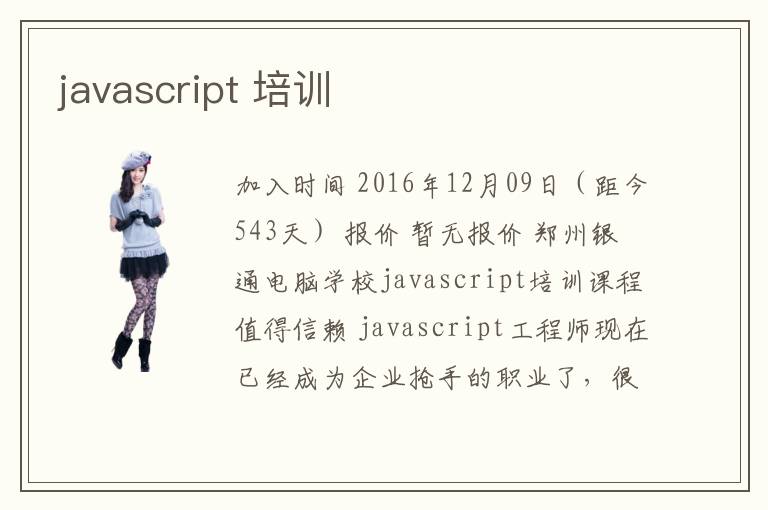 加入時間 2016年12月09日(距今543天) 報價 暫無報價 鄭州銀通電腦學(xué)校javascript培訓(xùn)課程值得信賴 javascript工程師現(xiàn)在已經(jīng)成為企業(yè)搶手的職業(yè)了,很多人開始選擇參加