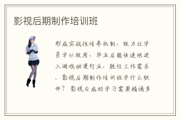 形成實戰(zhàn)性培養(yǎng)機制,致力讓學(xué)員學(xué)以致用,畢業(yè)后能快速地進入游戲動漫行業(yè),勝任工作需求。影視后期制作培訓(xùn)班學(xué)什么軟件? 影視合成的學(xué)習(xí)需要精通多種創(chuàng)意視覺軟件。