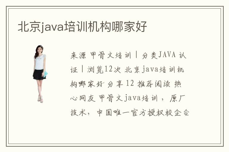 來源 北京java培訓(xùn)java培訓(xùn)機(jī)構(gòu)比較好 | 分類JAVA 認(rèn)證 | 瀏覽38次 我推薦北京學(xué)佳澳甲骨文 ,我一個朋友在那邊培訓(xùn)來著,學(xué)完后很快就找到一份不錯的工作,所以個人認(rèn)為那里應(yīng)該