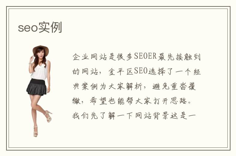 企業(yè)網(wǎng)站是很多SEOER最先接觸到的網(wǎng)站,金平區(qū)SEO選擇了一個(gè)經(jīng)典案例為大家解析,避免重沓覆轍,希望也能幫大家打開思路。我們先了解一下網(wǎng)站背景這是一個(gè)花了至少7