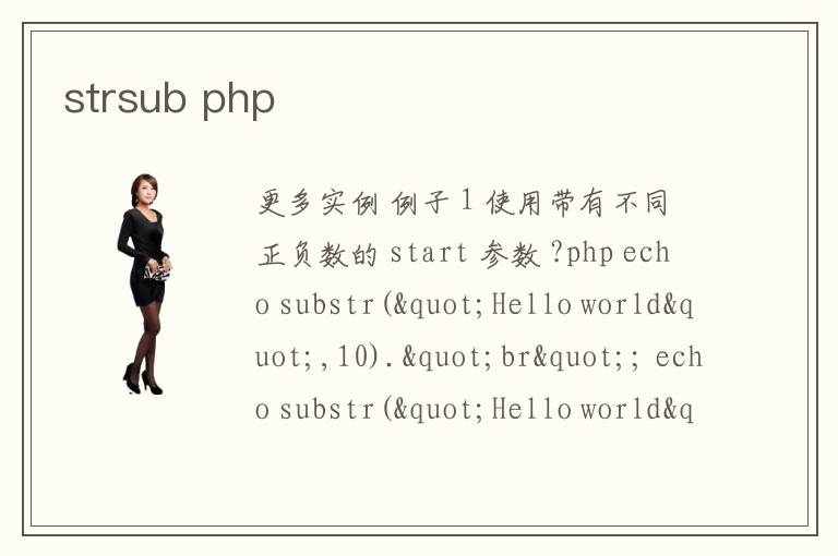 更多實(shí)例 例子 1 使用帶有不同正負(fù)數(shù)的 start 參數(shù) <?php echo substr(\"Hello world\",10).\"<br>\"; echo substr(\"Hello world\",1).\"<br>\"; echo substr(\"Hello world\",3).\"<br>\"; echo