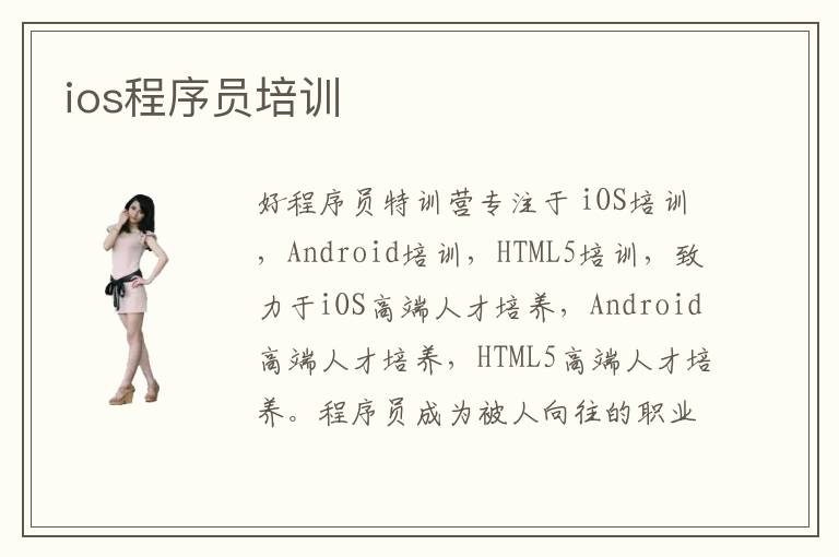 好程序員特訓(xùn)營(yíng)專(zhuān)注于 iOS培訓(xùn),Android培訓(xùn),HTML5培訓(xùn),致力于iOS高端人才培養(yǎng),Android高端人才培養(yǎng),HTML5高端人才培養(yǎng)。