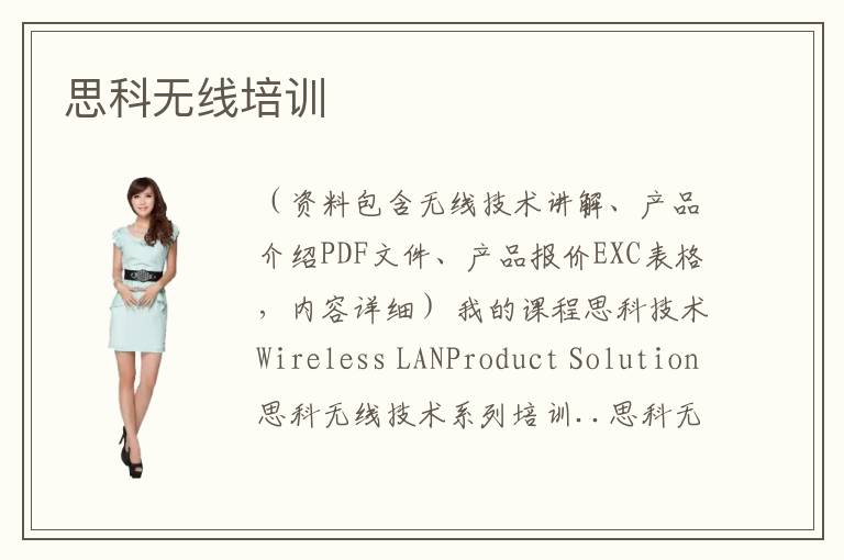 (資料包含無(wú)線技術(shù)講解、產(chǎn)品介紹PDF文件、產(chǎn)品報(bào)價(jià)EXC表格,內(nèi)容詳細(xì)) 我的課程>>思科技術(shù)>>Wireless LAN>>Product Solution>>思科無(wú)線技術(shù)系列培訓(xùn)..