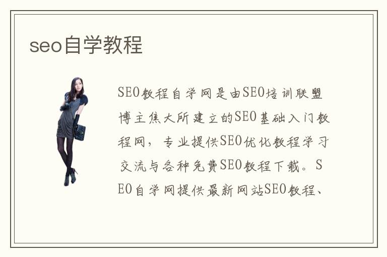 SEO教程自學(xué)網(wǎng)是由SEO培訓(xùn)聯(lián)盟博主焦大所建立的SEO基礎(chǔ)入門(mén)教程網(wǎng),專業(yè)提供SEO優(yōu)化教程學(xué)習(xí)交流與各種免費(fèi)SEO教程下載。