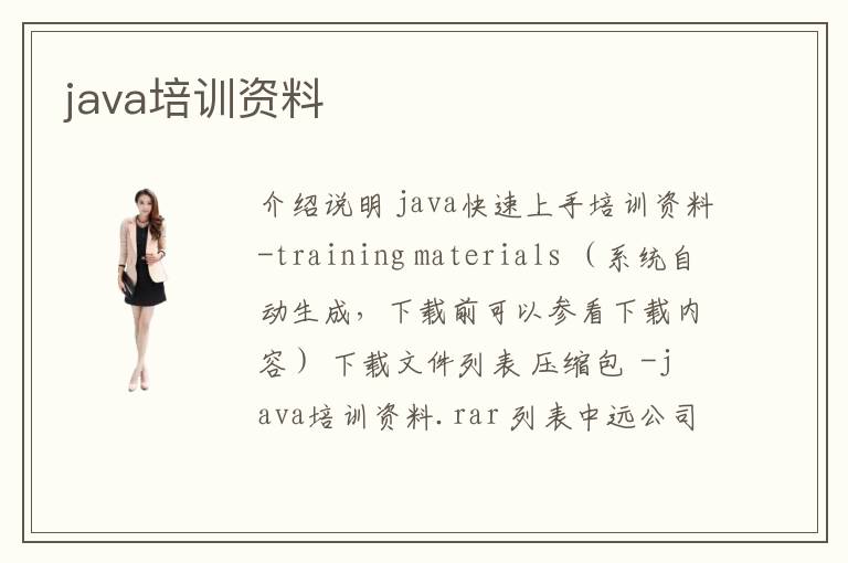介紹說明 java快速上手培訓(xùn)資料-training materials (系統(tǒng)自動生成,下載前可以參看下載內(nèi)容) 下載文件列表 壓縮包 -java培訓(xùn)資料.rar 列表中遠(yuǎn)公司--JAVA培訓(xùn)資料.