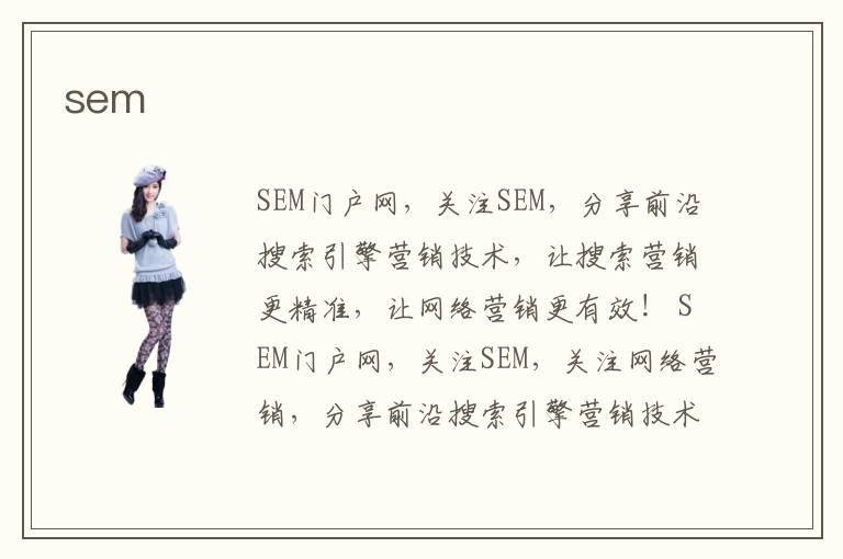 SEM門戶網(wǎng),關(guān)注SEM,分享前沿搜索引擎營銷技術(shù),讓搜索營銷更精準(zhǔn),讓網(wǎng)絡(luò)營銷更有效! SEM門戶網(wǎng),關(guān)注SEM,關(guān)注網(wǎng)絡(luò)營銷,分享前沿搜索引擎營銷技術(shù),讓搜索營銷