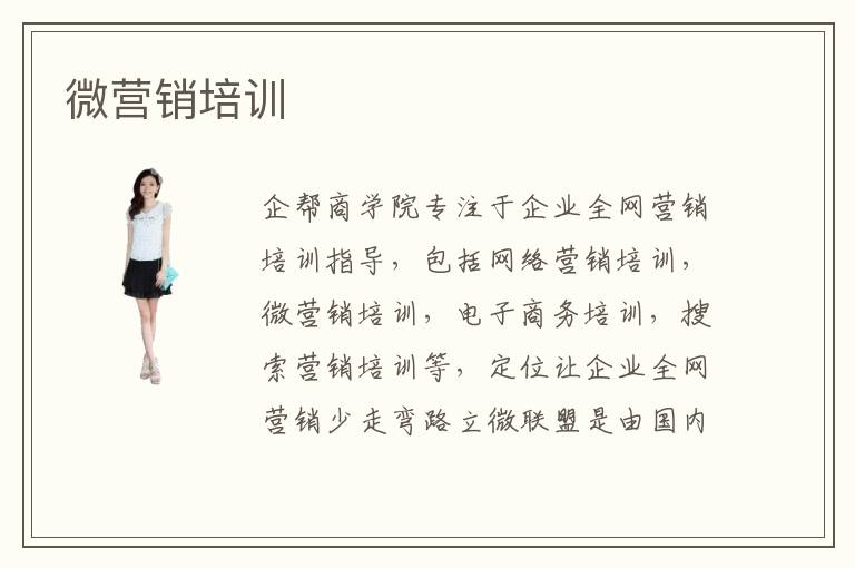企幫商學(xué)院專注于企業(yè)全網(wǎng)營(yíng)銷培訓(xùn)指導(dǎo),包括網(wǎng)絡(luò)營(yíng)銷培訓(xùn),微營(yíng)銷培訓(xùn),電子商務(wù)培訓(xùn),搜索營(yíng)銷培訓(xùn)等,定位讓企業(yè)全網(wǎng)營(yíng)銷少走彎路