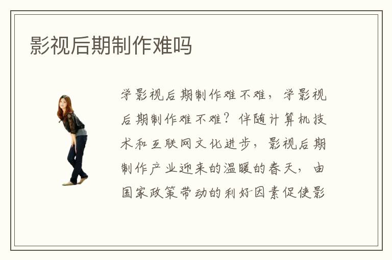 學(xué)影視后期制作難不難,學(xué)影視后期制作難不難?伴隨計(jì)算機(jī)技術(shù)和互聯(lián)網(wǎng)文化進(jìn)步,影視后期制作產(chǎn)業(yè)迎來的溫暖的春天,由國家政策帶動的利好因素促使影視后期制作文化欣欣