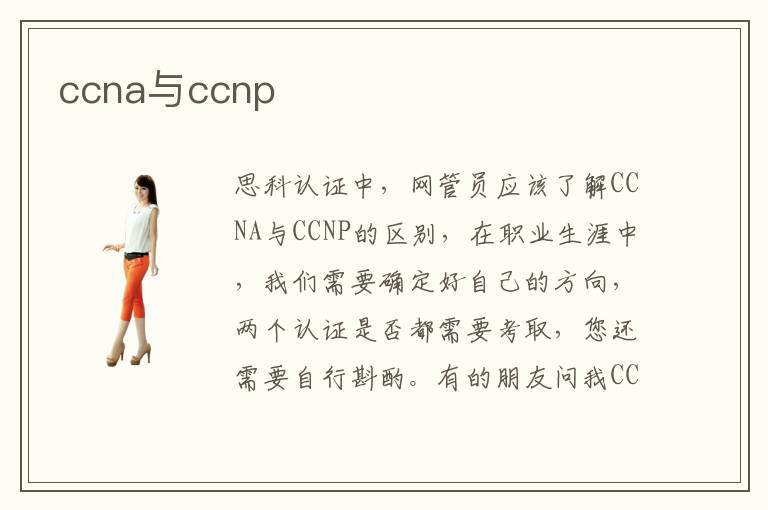 思科認(rèn)證中,網(wǎng)管員應(yīng)該了解CCNA與CCNP的區(qū)別,在職業(yè)生涯中,我們需要確定好自己的方向,兩個(gè)認(rèn)證是否都需要考取,您還需要自行斟酌。