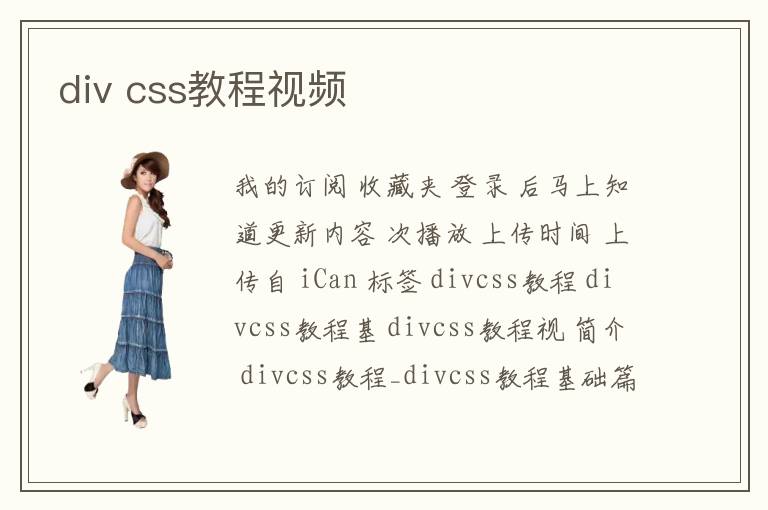 我的訂閱 收藏夾 登錄 后馬上知道更新內(nèi)容 次播放 上傳時間 上傳自 iCan 標簽 divcss教程 divcss教程基 divcss教程視 簡介 divcss教程_divcss教程基礎(chǔ)篇_divcss教程第
