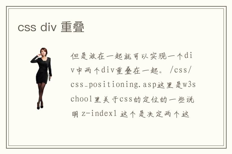 但是放在一起就可以實現(xiàn)一個div中兩個div重疊在一起。 /css/css_positioning.asp這里是w3school里關(guān)于css的定位的一些說明 z-index1 這個是決定兩個