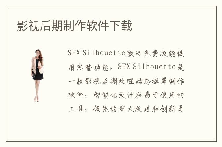SFX Silhouette激活免費版能使用完整功能,SFX Silhouette是一款影視后期處理動態(tài)遮罩制作軟件,智能化設(shè)計和易于使用的工具,領(lǐng)先的重大改進和創(chuàng)新是完全立體的工作流。