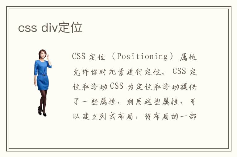 CSS 定位 (Positioning) 屬性允許你對元素進(jìn)行定位。 CSS 定位和浮動(dòng) CSS 為定位和浮動(dòng)提供了一些屬性,利用這些屬性,可以建立列式布局,將布局的一部分與另一部分重疊