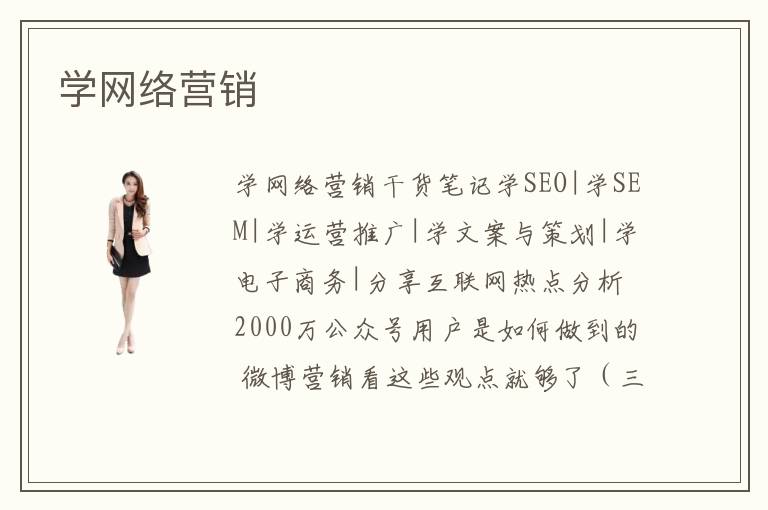 學(xué)網(wǎng)絡(luò)營銷干貨筆記學(xué)SEO|學(xué)SEM|學(xué)運營推廣|學(xué)文案與策劃|學(xué)電子商務(wù)|分享互聯(lián)網(wǎng)熱點分析 2000萬公眾號用戶是如何做到的 微博營銷看這些觀點就夠了(三)! 微博營銷看這