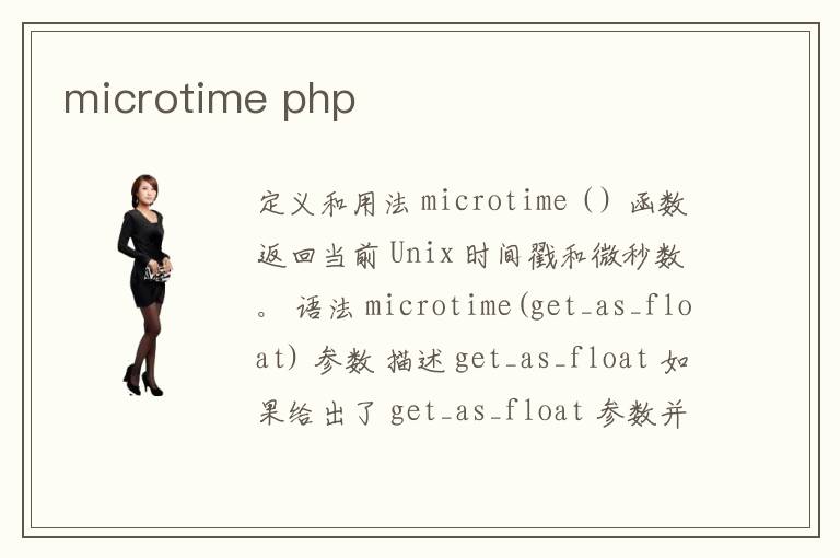 作者 字體[ 增加 減小 這篇文章主要介紹了PHP函數(shù)microtime()用法與說明,有需要的朋友可以參考一下 定義和用法 PHP函數(shù)microtime()返回當前 Unix 時間戳和微秒數(shù)。
