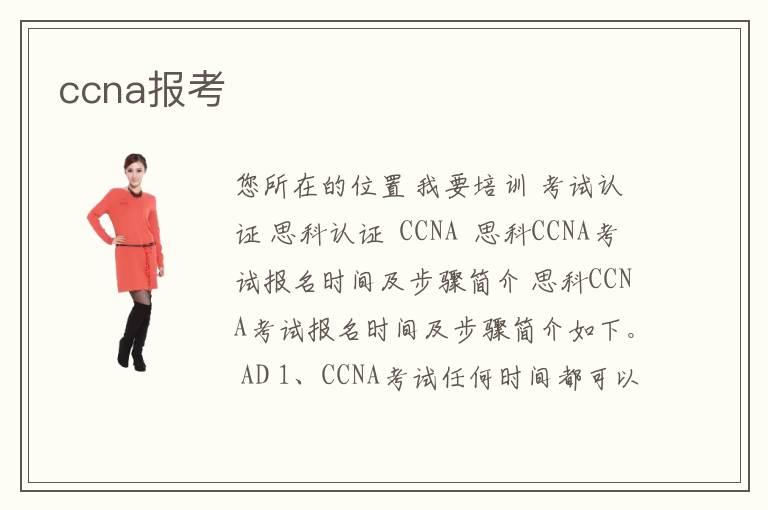 您所在的位置 我要培訓(xùn) >考試認(rèn)證 >思科認(rèn)證 > CCNA > 思科CCNA考試報(bào)名時(shí)間及步驟簡(jiǎn)介 思科CCNA考試報(bào)名時(shí)間及步驟簡(jiǎn)介如下。 AD 1、CCNA考試任何時(shí)間都可以報(bào)名