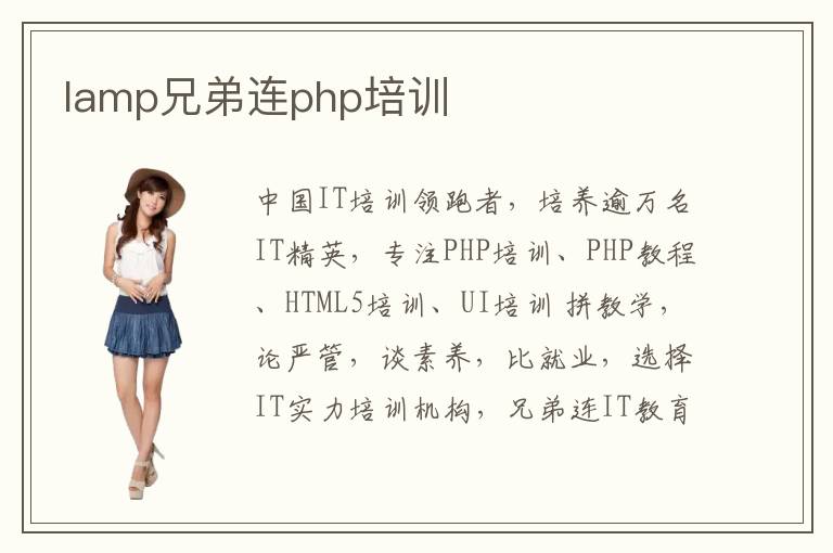 中國IT培訓(xùn)領(lǐng)跑者,培養(yǎng)逾萬名IT精英,專注PHP培訓(xùn)、PHP教程、HTML5培訓(xùn)、UI培訓(xùn) 拼教學(xué),論嚴(yán)管,談素養(yǎng),比就業(yè),選擇IT實力培訓(xùn)機(jī)構(gòu),兄弟連IT教育,就夠了!