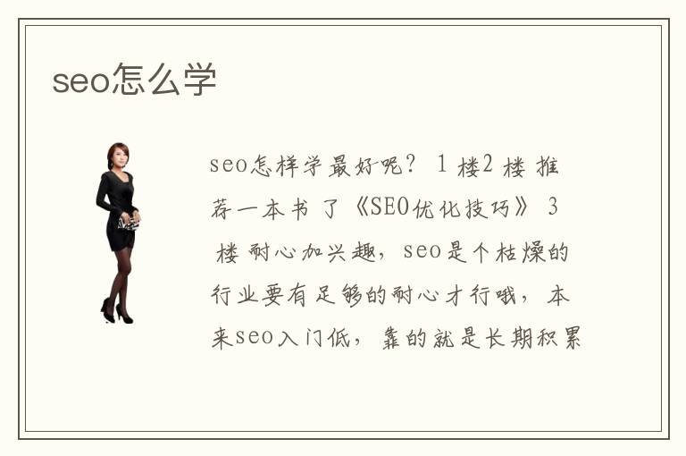 seo怎樣學(xué)最好呢? 1 樓2 樓 推薦一本書(shū) 了《SEO優(yōu)化技巧》 3 樓 耐心加興趣,seo是個(gè)枯燥的行業(yè)要有足夠的耐心才行哦,本來(lái)seo入門(mén)低,靠的就是長(zhǎng)期積累的過(guò)程; 最新加入