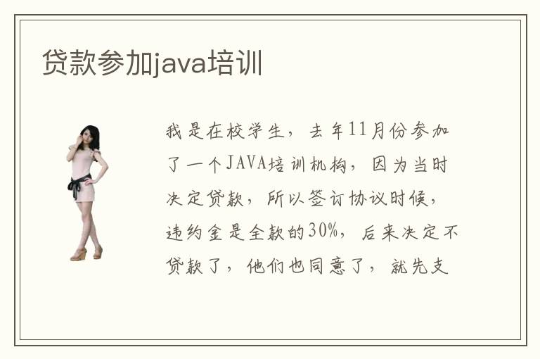 我是在校學(xué)生,去年11月份參加了一個JAVA培訓(xùn)機(jī)構(gòu),因為當(dāng)時決定貸款,所以簽訂協(xié)議時候,違約金是全款的30%,后來決定不貸款了,他們也同意了,就先支付了4000元?,F(xiàn)