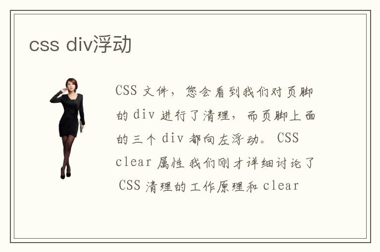 CSS 文件,您會看到我們對頁腳的 div 進行了清理,而頁腳上面的三個 div 都向左浮動。 CSS clear 屬性 我們剛才詳細討論了 CSS 清理的工作原理和 clear 屬性應用方法。如果您