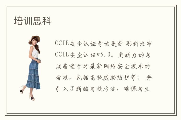 CCIE安全認(rèn)證考試更新 思科發(fā)布CCIE安全認(rèn)證v5.0。更新后的考試著重于對最新網(wǎng)絡(luò)安全技術(shù)的考核,包括高級威脅防護(hù)等; 并引入了新的考核方法,確保考生掌握不斷演進(jìn)的新