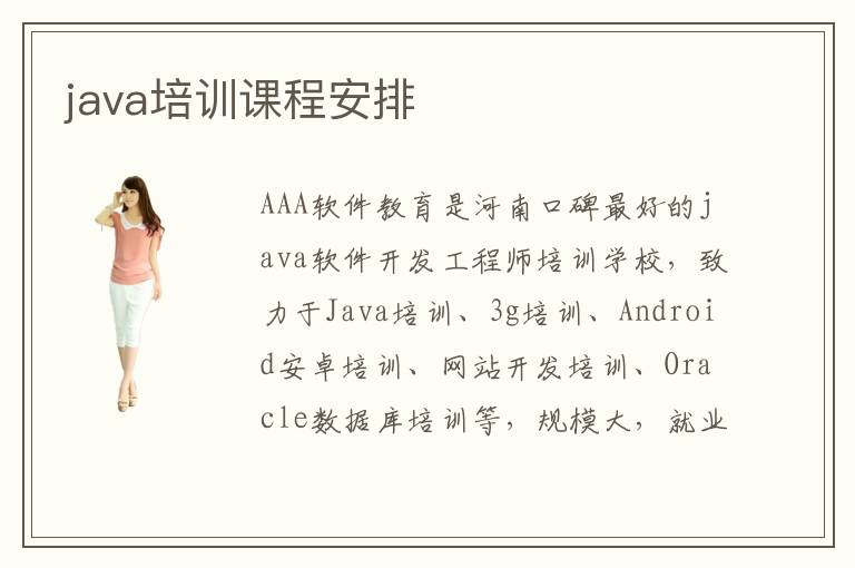 AAA軟件教育是河南口碑最好的java軟件開發(fā)工程師培訓學校,致力于Java培訓、3g培訓、Android安卓培訓、網(wǎng)站開發(fā)培訓、Oracle數(shù)據(jù)庫培訓等,規(guī)模大,就業(yè)強,口碑好,可