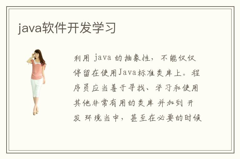 利用 java 的抽象性,不能僅僅停留在使用Java標(biāo)準(zhǔn)類庫上。程序員應(yīng)當(dāng)善于尋找、學(xué)習(xí)和使用其他非常有用的類庫 并加到 開發(fā) 環(huán)境當(dāng)中,甚至在必要的時候建立自己能建立自己的