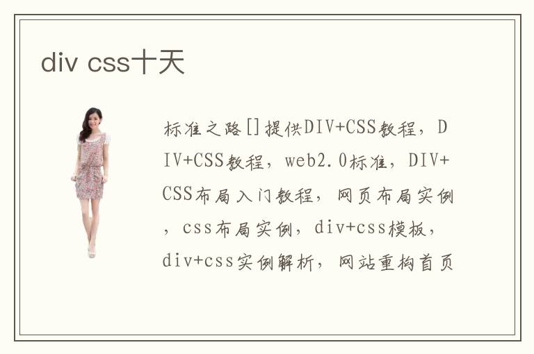 更多精彩,請(qǐng)參閱樂享weby 《十天學(xué)會(huì)web標(biāo)準(zhǔn)(DIV+CSS)》是本站出品的系列教程,預(yù)計(jì)用十節(jié)教程講解完成。 學(xué)習(xí)本系列教程需有一