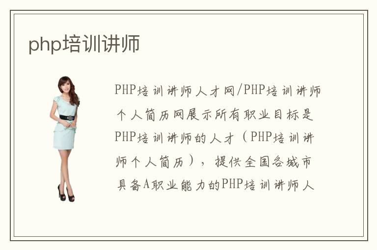 PHP培訓(xùn)講師人才網(wǎng)/PHP培訓(xùn)講師個(gè)人簡(jiǎn)歷網(wǎng)展示所有職業(yè)目標(biāo)是PHP培訓(xùn)講師的人才(PHP培訓(xùn)講師個(gè)人簡(jiǎn)歷),提供全國(guó)各城市具備A職業(yè)能力的PHP培訓(xùn)講師人才最新個(gè)