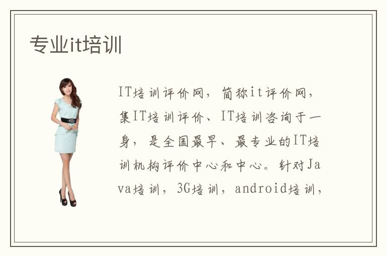 IT培訓(xùn)評價(jià)網(wǎng),簡稱it評價(jià)網(wǎng),集IT培訓(xùn)評價(jià)、IT培訓(xùn)咨詢于一身,是全國最早、最專業(yè)的IT培訓(xùn)機(jī)構(gòu)評價(jià)中心和中心。針對Java培訓(xùn),3G培訓(xùn),android培訓(xùn),C++培訓(xùn)以及