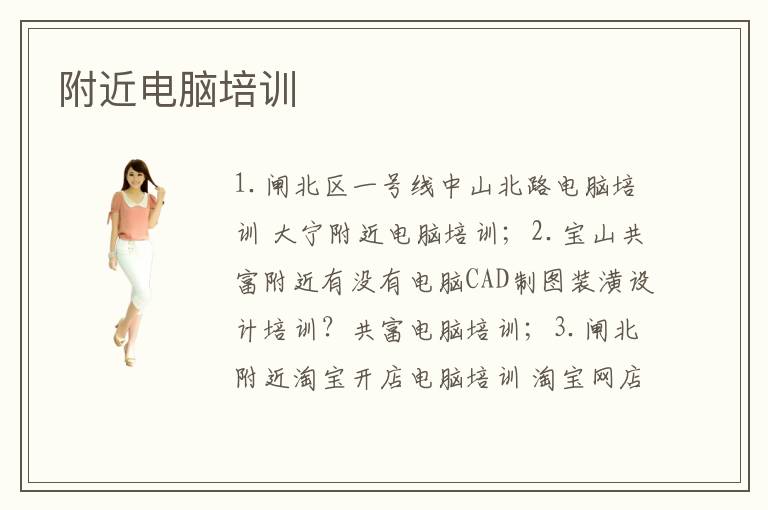 1.閘北區(qū)一號線中山北路電腦培訓 大寧附近電腦培訓;2.寶山共富附近有沒有電腦CAD制圖裝潢設計培訓?共富電腦培訓;3.閘北附近淘寶開店電腦培訓 淘寶網(wǎng)店電腦培訓 網(wǎng)店裝