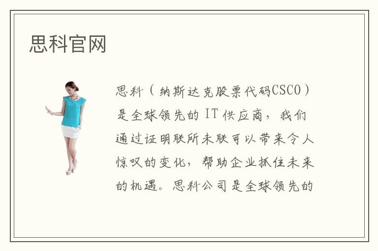 思科公司是全球領(lǐng)先的互聯(lián)網(wǎng)設(shè)備供應(yīng)商,1984年由斯坦福大學(xué)的一對教授夫婦創(chuàng)立,總部位于美國加利福尼亞州的圣何塞。思科向客戶提供端到端的網(wǎng)絡(luò)方案,使客戶能夠建立起