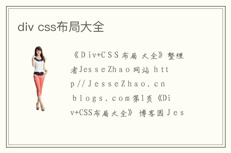 《 D iv+C S S 布局 大全》整理者Jes s e Zh a o 網(wǎng)站 h tt p // J e s s e Z h a o . c n b l o g s . c o m 第1頁(yè)《Div+CSS布局大全》 博客園 J e ss e Z h a o 整理 h t t p //je ss e z h a o