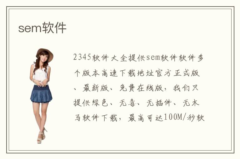 2345軟件大全提供sem軟件軟件多個版本高速下載地址官方正式版、最新版、免費在線版,我們只提供綠色、無毒、無插件、無木馬軟件下載,最高可達(dá)100M/秒軟件下載速度,
