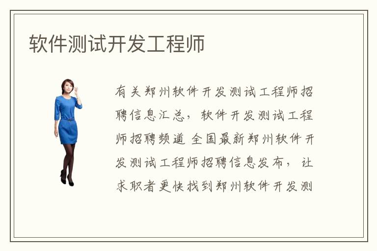 有關(guān)鄭州軟件開發(fā)測(cè)試工程師招聘信息匯總,軟件開發(fā)測(cè)試工程師招聘頻道 全國(guó)最新鄭州軟件開發(fā)測(cè)試工程師招聘信息發(fā)布,讓求職者更快找到鄭州軟件開發(fā)測(cè)試工程師相關(guān)的招