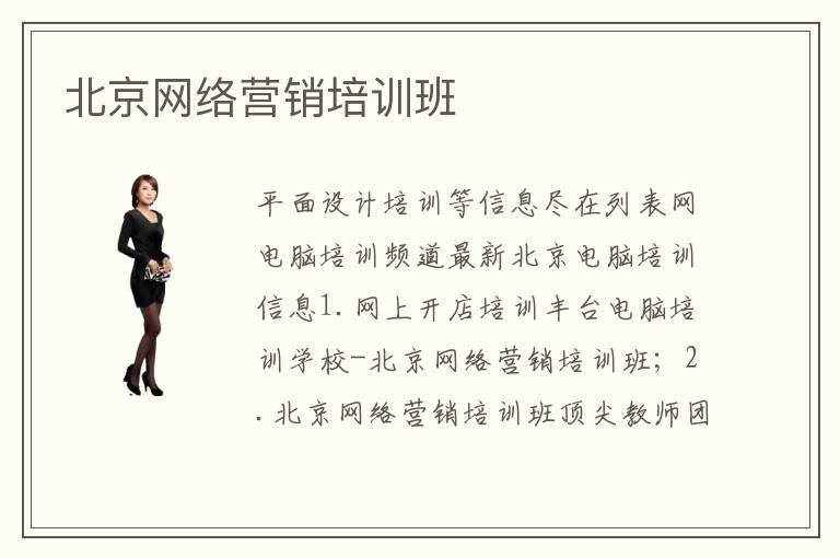平面設(shè)計(jì)培訓(xùn)等信息盡在列表網(wǎng)電腦培訓(xùn)頻道最新北京電腦培訓(xùn)信息1.網(wǎng)上開店培訓(xùn)豐臺(tái)電腦培訓(xùn)學(xué)校-北京網(wǎng)絡(luò)營銷培訓(xùn)網(wǎng)絡(luò)營銷培訓(xùn)班;2.北京網(wǎng)絡(luò)營銷培訓(xùn)班頂尖教師團(tuán)隊(duì);3.北京網(wǎng)絡(luò)營