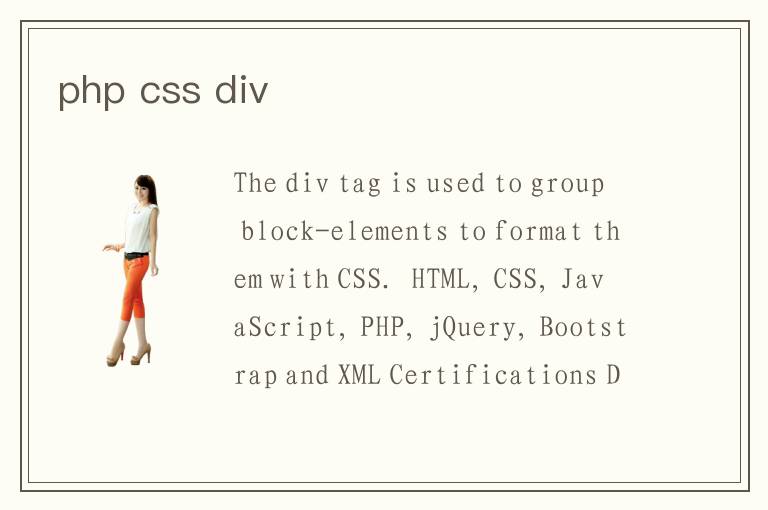 The <div> tag is used to group block-elements to format them with CSS. HTML, CSS, JavaScript, PHP, jQuery, Bootstrap and XML Certifications