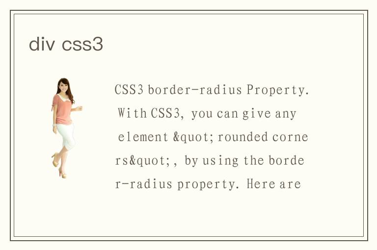 CSS3 border-radius Property. With CSS3, you can give any element \"rounded corners\", by using the border-radius property. Here are three examples 1.