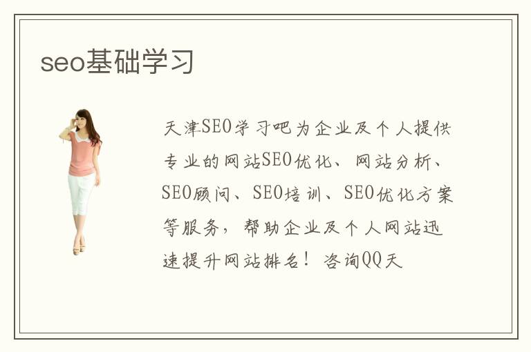 天津SEO學習吧為企業(yè)及個人提供專業(yè)的網(wǎng)站SEO優(yōu)化、網(wǎng)站分析、SEO顧問、SEO培訓、SEO優(yōu)化方案等服務,幫助企業(yè)及個人網(wǎng)站迅速提升網(wǎng)站排名!咨詢QQ天