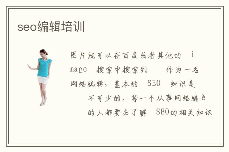 圖片就可以在百度或者其他的?image?搜索中搜索到??作為一名網(wǎng)絡編輯,基本的?SEO?知識是必不可少的,每一個從事網(wǎng)絡編輯的人都要去了解?SEO的相關知識,那樣自