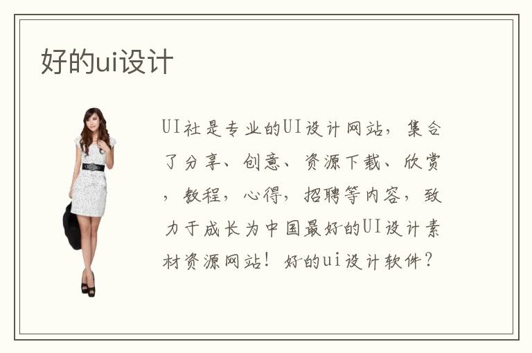 UI社是專(zhuān)業(yè)的UI設(shè)計(jì)網(wǎng)站,集合了分享、創(chuàng)意、資源下載、欣賞,教程,心得,招聘等內(nèi)容,致力于成長(zhǎng)為中國(guó)最好的UI設(shè)計(jì)素材資源網(wǎng)站!