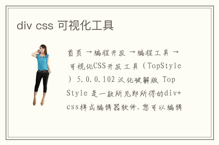 首頁 →編程開發(fā) →編程工具 → 可視化CSS開發(fā)工具(TopStyle) 5.0.0.102 漢化破解版 TopStyle 是一款所見即所得的div+css樣式編輯器軟件.您可以編輯出更好更完整的CSS!