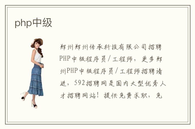 鄭州鄭州傳承科技有限公司招聘PHP中級(jí)程序員/工程師,更多鄭州PHP中級(jí)程序員/工程師招聘請(qǐng)進(jìn)>>>,592招聘網(wǎng)是國(guó)內(nèi)大型優(yōu)秀人才招聘網(wǎng)站!提供免費(fèi)求職,免費(fèi)招聘服