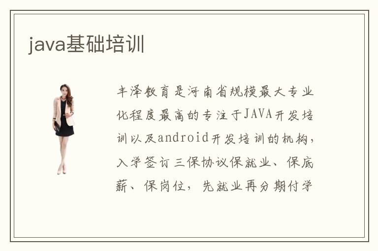 豐澤教育是河南省規(guī)模最大專業(yè)化程度最高的專注于JAVA開發(fā)培訓(xùn)以及android開發(fā)培訓(xùn)的機(jī)構(gòu),入學(xué)簽訂三保協(xié)議保就業(yè)、保底薪、保崗位,先就業(yè)再分期付學(xué)費(fèi)!