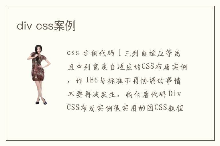 css 示例代碼 [ 三列自適應(yīng)等高且中列寬度自適應(yīng)的CSS布局實(shí)例,作 IE6與標(biāo)準(zhǔn)不再協(xié)調(diào)的事情不要再次發(fā)生。我們看代碼 DivCSS布局實(shí)例很實(shí)用的圖
