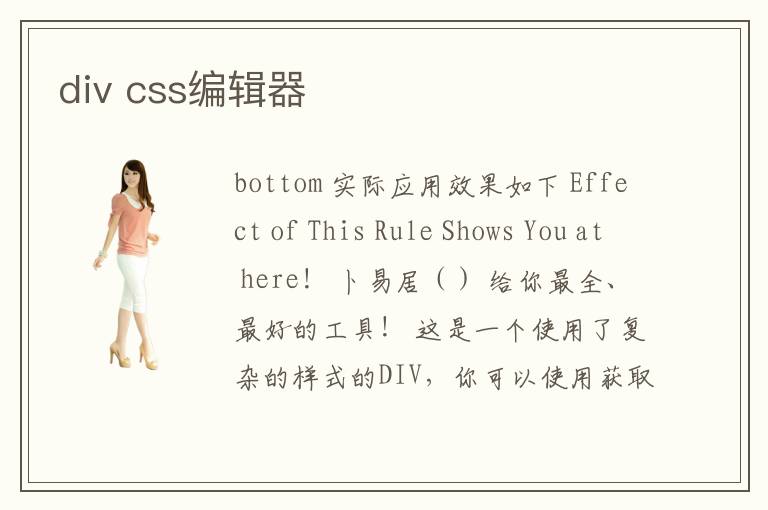 bottom 實際應(yīng)用效果如下 Effect of This Rule Shows You at here! 卜易居() 給你最全、最好的工具! 這是一個使用了復(fù)雜的樣式的DIV,你可以使用獲取CSS來