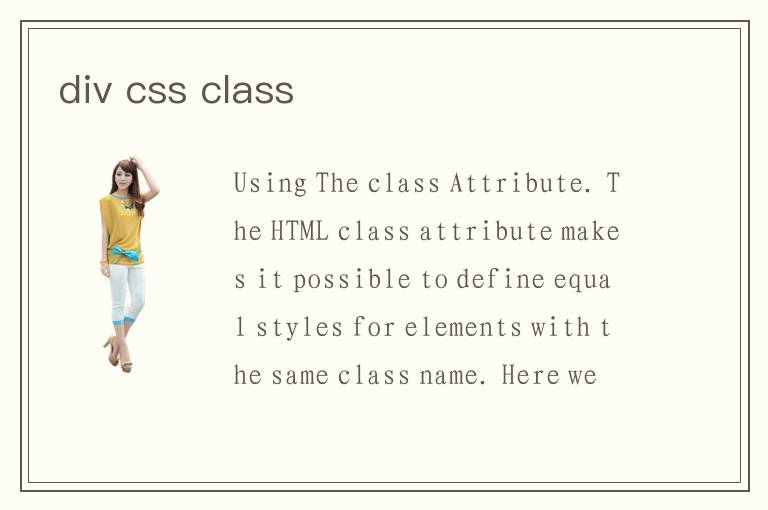 Using The class Attribute. The HTML class attribute makes it possible to define equal styles for elements with the same class name. Here we have three <div> elements