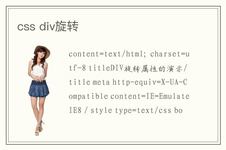 content="text/html; charset=utf-8"> <title>DIV旋轉屬性的演示</title> <meta http-equiv="X-UA-Compatible" content="IE=EmulateIE8" /> <style type="text/css"> body { font-